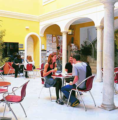 This school, part of the International House network of schools, is located in the heart of town just 10 minutes walking distance to the cathedral and 2 minutes to Plaza Nueva. The building is a typical Andalucian house with a reception desk on the ground floor, training director's office, teachers' room, classrooms, internet access, kitchen, vending machines and common room on the second and third floors and a large roof terrace. The classrooms are large and bright and they are equipped with a range of materials; there are also TVs and videos as teaching aids. The school advertises locally for Spanish students that would like to take English lessons. The foreign language school that we work with, located 1 minute from this centre, can often provide volunteer students and further support for trainee teachers. The school also owns its own cafe/bar (serving drinks and tapas) that is on the same street. This provides an excellent meeting place for both teachers and students from all over the world.